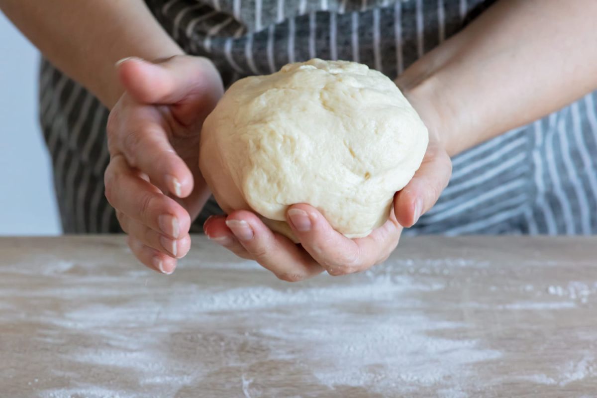 Pour préparer 4 portions, mélangez 200 g de skyr ou de fromage blanc avec 200 g de farine, 2 cuillères à café de levure chimique et 1 cuillère à café de sel. Formez ensuite une boule. Pas besoin de laisser reposer la pâte, elle est prête à être utilisée immédiatement. Divisez-la en quatre et façonnez selon vos envies.