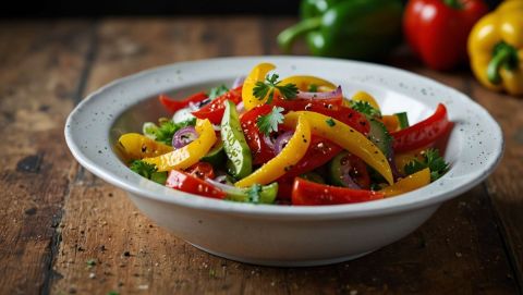 Ajoutez une note vibrante à vos repas avec cette savoureuse salade aux trois poivrons. Non seulement elle est un festin visuel, mais elle combine également des saveurs rafraîchissantes et une richesse en vitamines, idéale pour les journées ensoleillées ou en accompagnement de vos grillades.