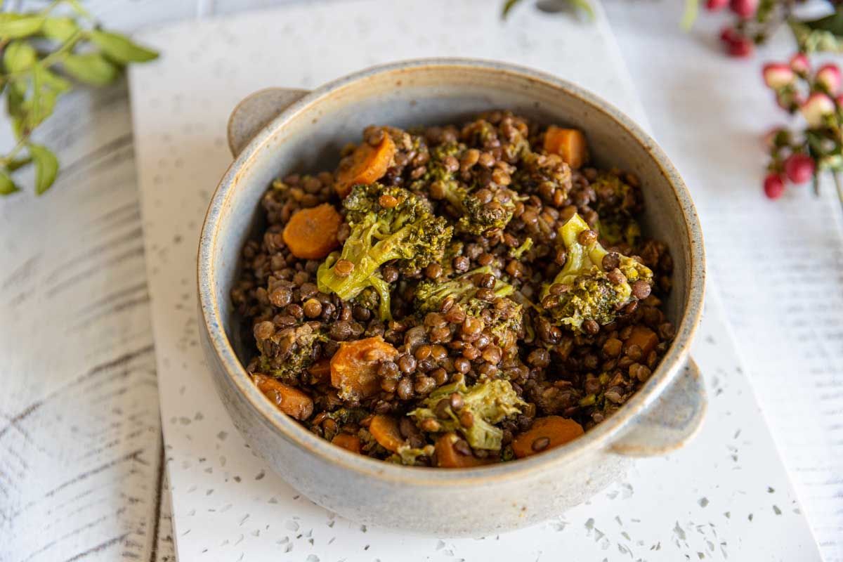 Pour cette recette, j'ai choisi d'associer des lentilles vertes et des brocolis. Certes, le résultat est assez vert, mais je vous assure que la saveur est au rendez-vous ! De plus, ce plat se conserve admirablement et se réchauffe encore mieux, ce qui en fait une excellente option pour les lunch boxes ou le batch cooking.