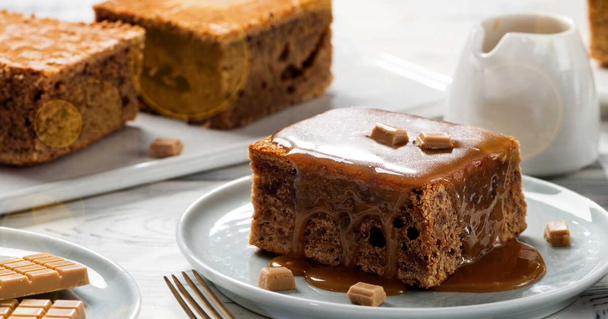 - Dès la sortie du four, nappez le gâteau avec un peu de caramel maison et laissez refroidir. Il est recommandé de le savourer tiède.