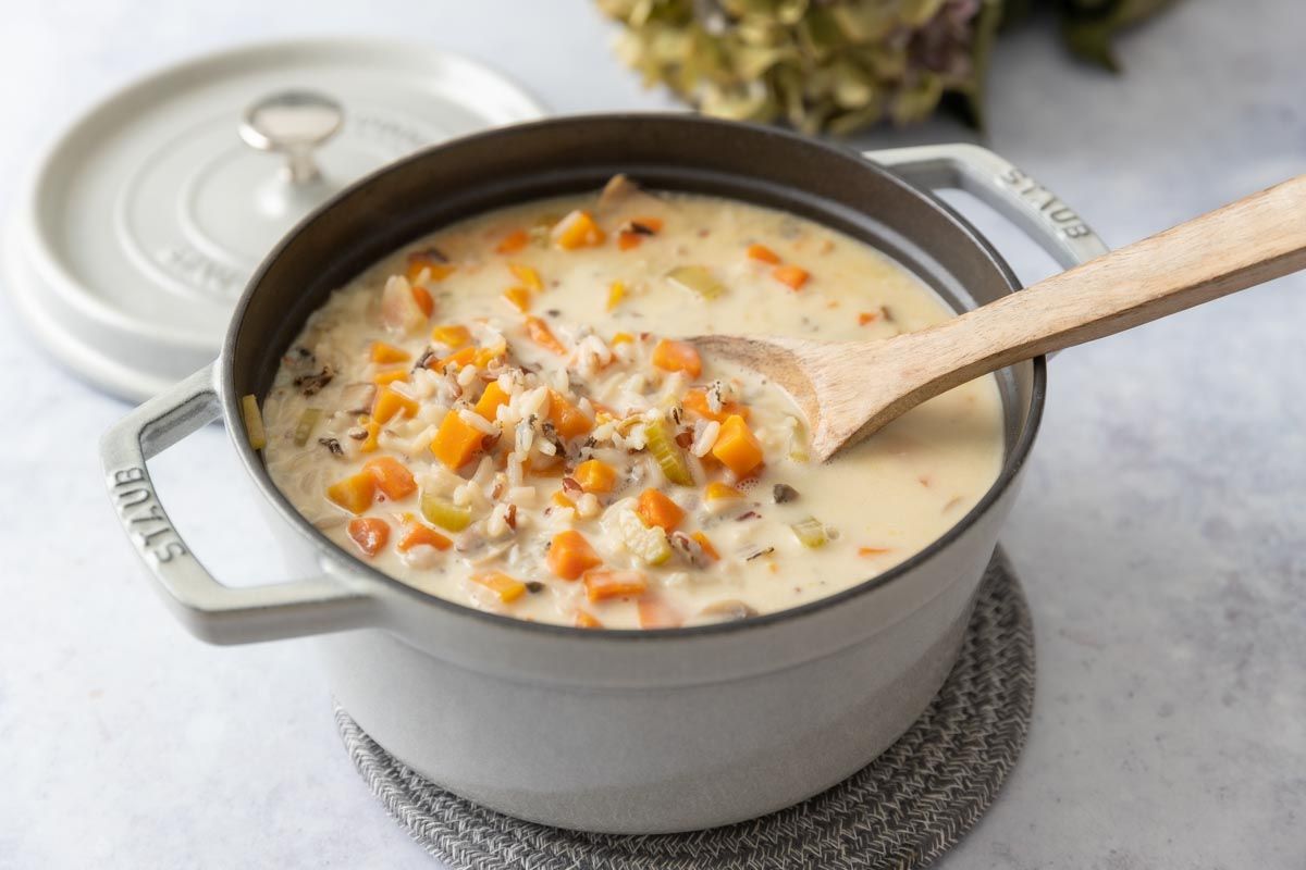 Avec le temps qui se rafraîchit et les journées grises, quoi de mieux qu'une bonne soupe pour réchauffer le corps et l'esprit ? Avec ma cocotte, j'ai concocté une délicieuse soupe de riz sauvage, inspirée par une photo alléchante trouvée sur Pinterest.
