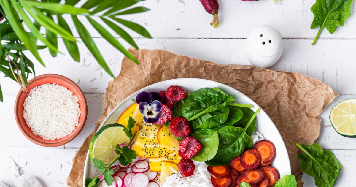 - Préparez les crudités : lavez, coupez et disposez-les joliment sur le riz.