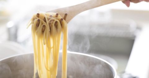 - Faites cuire les spaghetti dans une grande casserole d'eau bouillante salée jusqu'à ce qu'ils soient al dente.