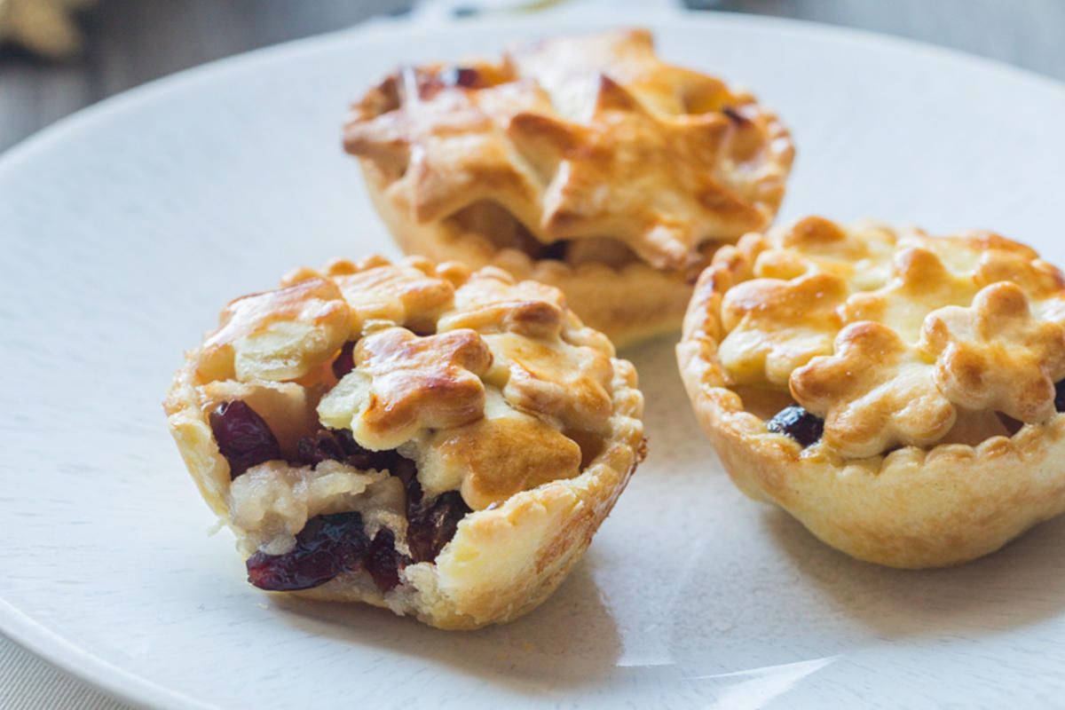 Partant de ma recette classique de mince pies, j'ai décidé de créer une farce à base de pommes et d’airelles, arrosée d’un bon schnaps, comme le marc de gewurztraminer. Si vous préférez une version sans alcool, n'hésitez pas à substituer par du jus d'orange frais ou de l'eau de fleur d'oranger !