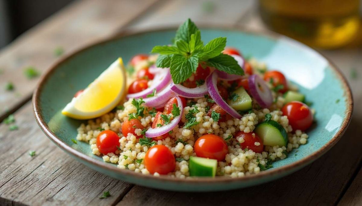 Le taboulé végétal est une salade rafraîchissante qui marie habilement la simplicité des ingrédients à une palette de saveurs explosifs grâce aux herbes fraîches et aux tomates cerises. Facile à réaliser et idéale pour les jours ensoleillés, cette recette légère séduira tous les amateurs de cuisine saine.