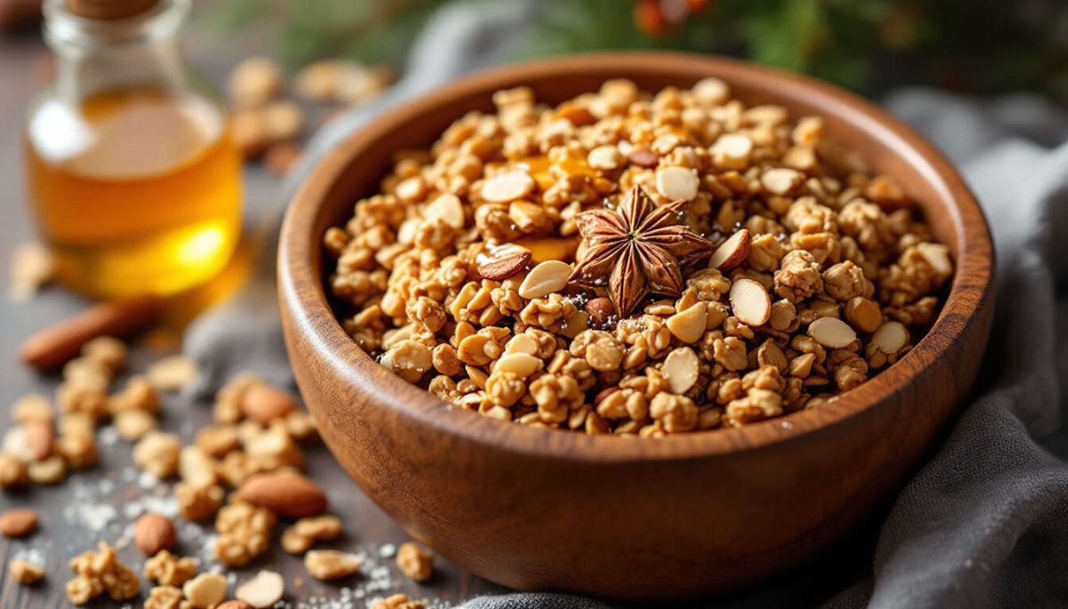 Offrez-vous un petit-déjeuner plein de saveurs avec cette recette de granola de sarrasin aux épices de Noël. Ce mélange croquant et aromatique est non seulement rapide à préparer, mais il apporte également une excellente option pour une alimentation saine. En outre, vous pouvez l'adapter selon vos préférences personnelles en ajoutant des fruits secs ou d'autres épices que vous appréciez.
